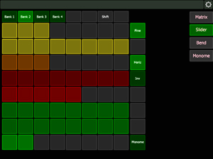 - Bend mode: 4 banks of vertical/horizontal pitch bend like controls.